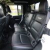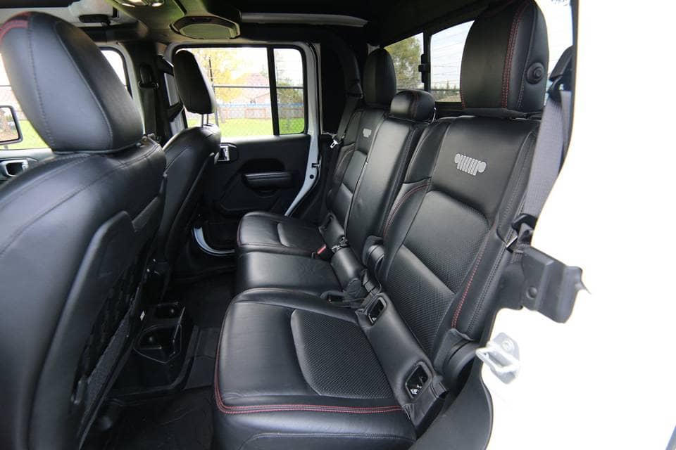The seating options include comfortable cloth or leather-trimmed seats depending on the chosen trim level. Higher trims like Rubicon offer premium Nappa leather upholstery that adds a touch of luxury to this rugged vehicle. The rear seats can be folded down to create additional storage space in conjunction with the truck bed.